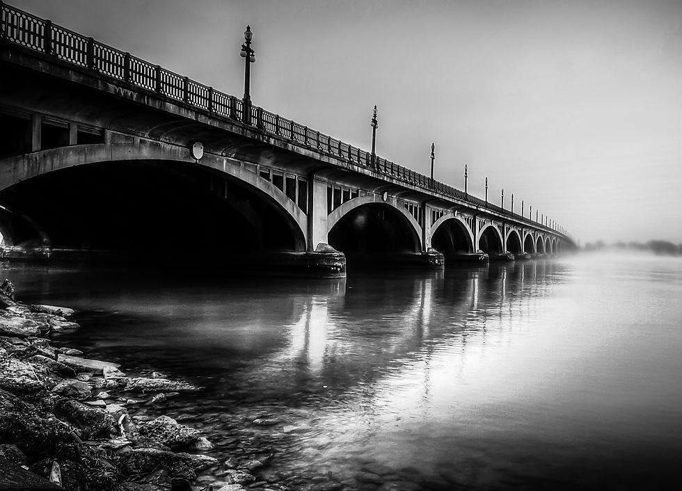 A black and white photo I found pleasant. The bridge looks never-ending as the picture gets blurry at the end, which makes the bridge appear long.